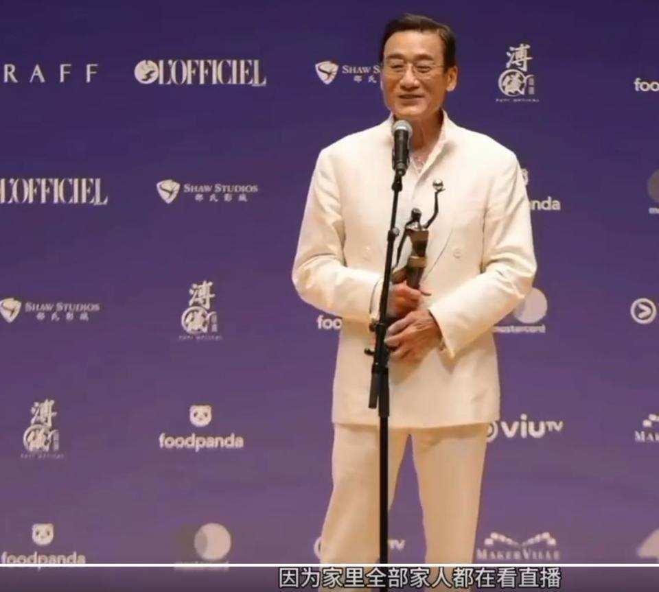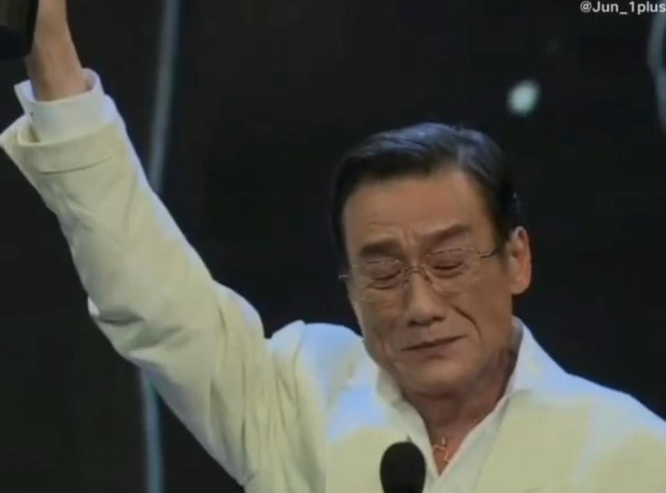 然而,最动情的时刻留给了家人。当说到 " 最应该多谢的是我的家里人 " 时,这位影帝的声音开始颤抖。他逐一念出两个女儿、女婿和孙儿的名字,最后将目光投向陪伴自己 44 年的妻子江嘉年:" 尤其是我太太,她忍了我 44 年。" 话音未落,泪水已滑落脸颊,他长叹一口气,在满场起立掌声中哽咽下台。这一幕深情告白,瞬间成为典礼最温暖的记忆点。