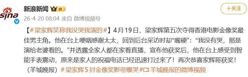 当影帝在台上落泪感谢那个 " 忍了他 44 年 " 的女人,又在后台狡黠一笑将深情归为演技,观众看到的,是一个男人对家庭最厚重的担当,以及一位艺术家举重若轻的浪漫。时间终会奖励那些认真演戏、认真去爱的人——梁家辉的故事,正是这句话最生动的注脚。