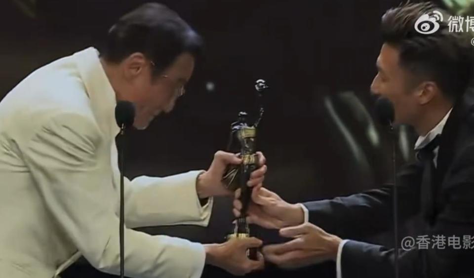 从颁奖嘉宾谢霆锋手中接过奖杯时,梁家辉的眼中已泛起泪光。今年恰逢香港电影金像奖 44 周年,也是他踏入电影行业的第 44 个年头,这份巧合让奖项别具意义。他在感言中郑重感谢导演、动作指导、成家班武师及全体剧组:" 是你们出众的设计,增加了角色傅隆生的狠劲与强度。" 提及经纪人 Elaine 时,他真诚道:" 这几年她熬了我很多的苦,包括我的怪责与责骂。"